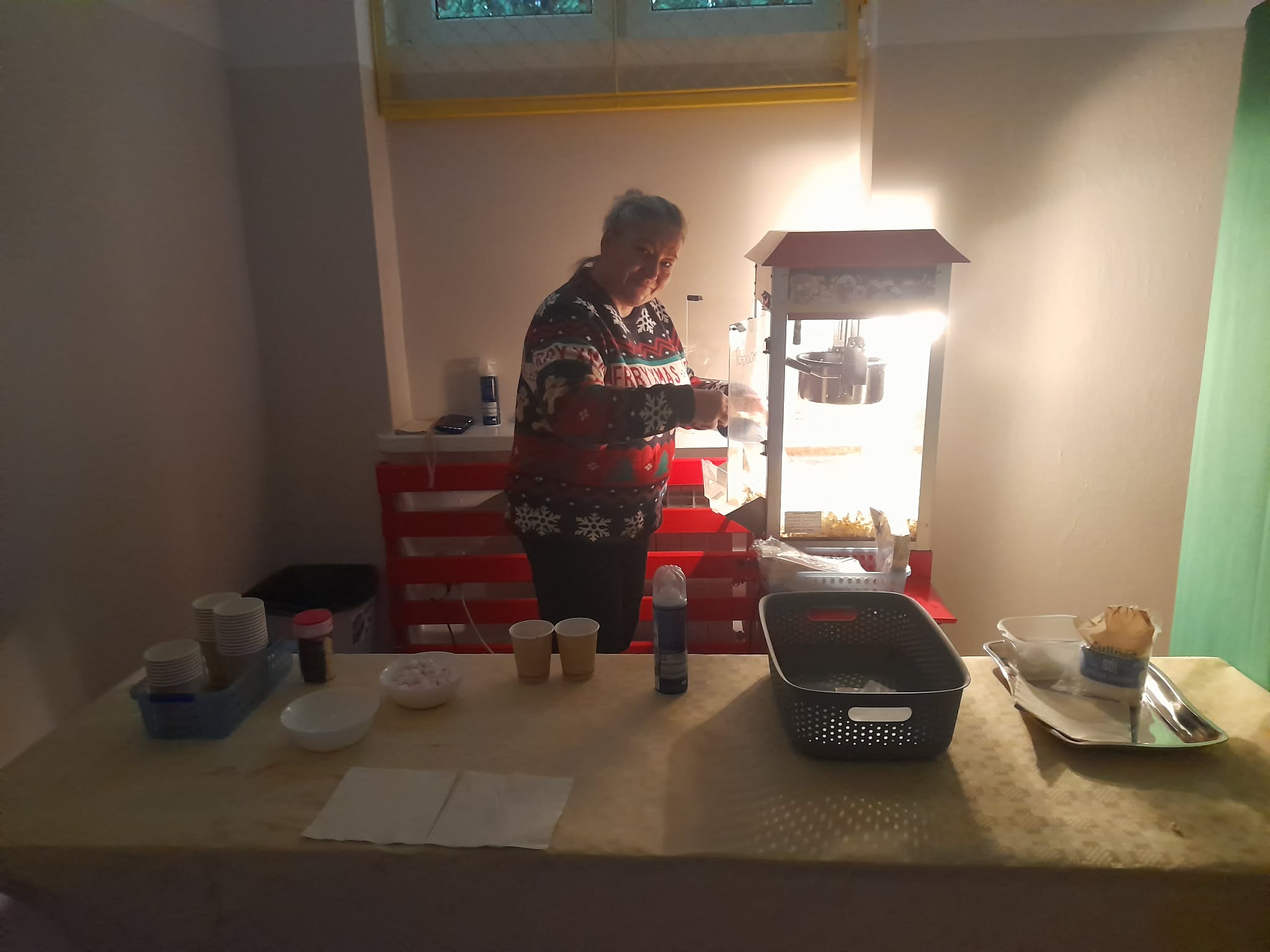 Na dużym ekranie wyświetlany jest film, a klimat dopełnia maszyna z pysznym popcornem oraz ciepłe kakao.