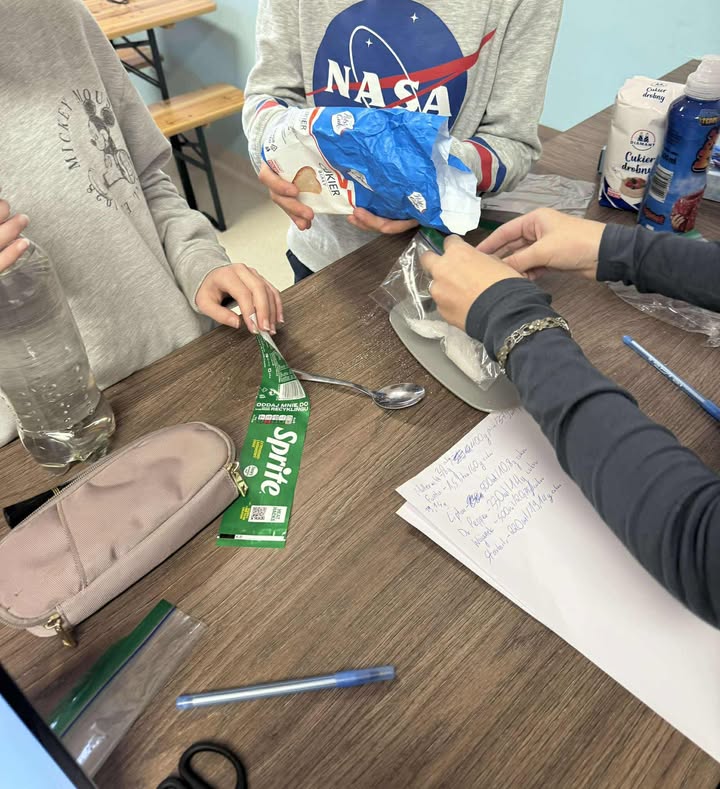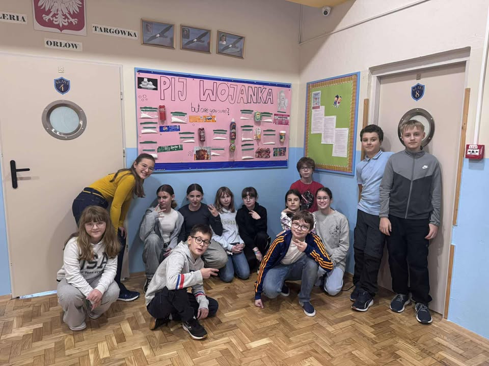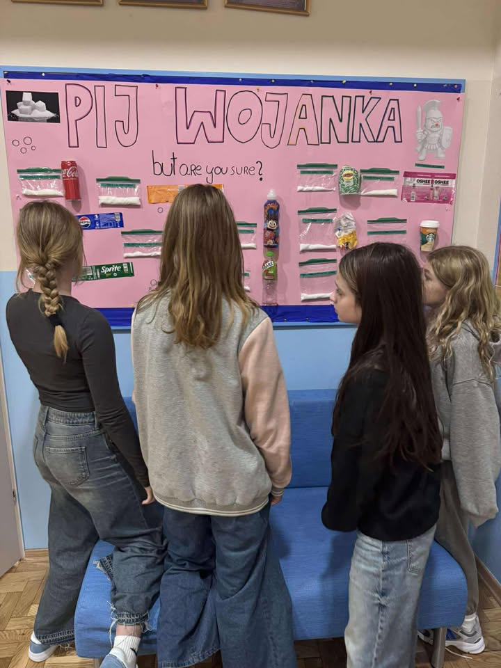 „Pij Wojanka – but are you sure?” - Think before you drink! Uczniowie klasy 6 na lekcji języka angielskiego omawiając rozdział o zdrowych nawykach, postanowili sprawdzić, ile cukru naprawdę pijemy każdego dnia. Szóstoklasiści przygotowali plakat, który pokazuje, ile łyżeczek cukru kryje się w popularnych napojach. Szóstoklasiści odmierzyli i zapakowali odpowiednią ilość cukru do małych torebek, aby każdy mógł na własne oczy zobaczyć, co naprawdę znajduje się w jego ulubionym napoju. Od dziś uczniowie klasy 6 wiedzą, że to, co pijemy, naprawdę ma znaczenie!