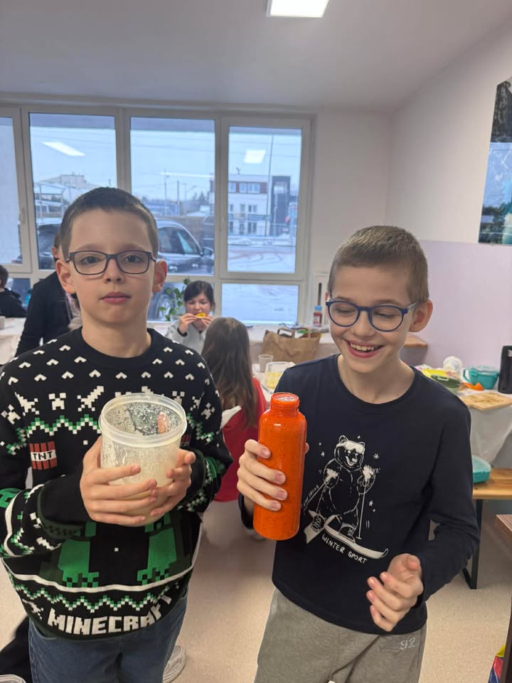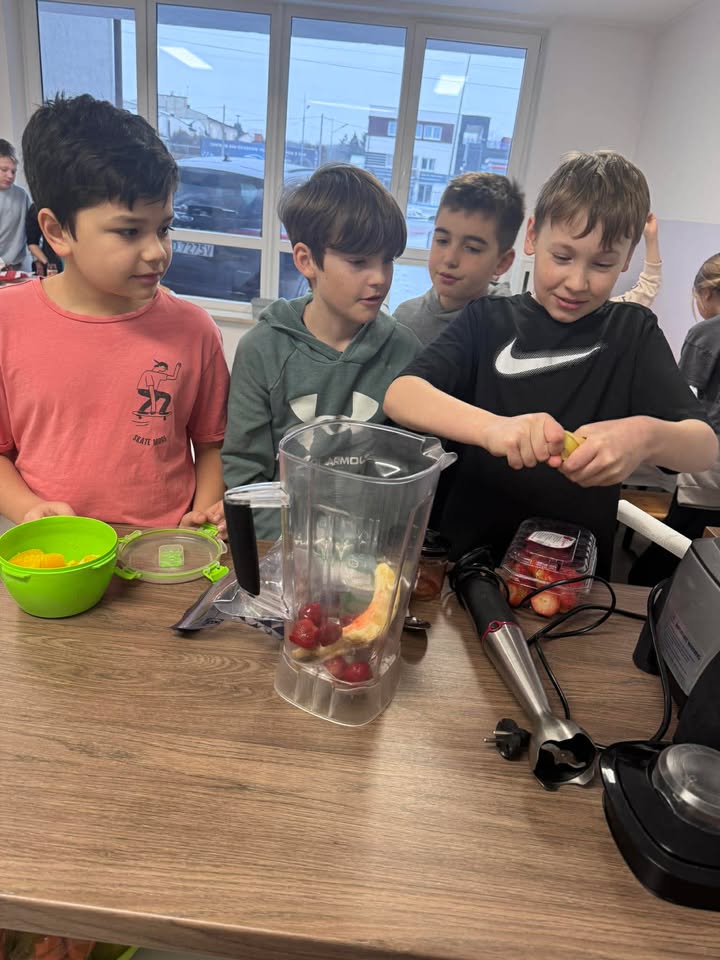 Uczniowie klasy 4 wzięli udział w wyjątkowej lekcji projektowej z języka angielskiego, której tematem było jedzenie. Było nie tylko edukacyjnie, ale i… pysznie! Podczas zajęć uczniowie utrwalali słownictwo związane z produktami spożywczymi oraz w praktyczny sposób ćwiczyli zagadnienia gramatyczne dotyczące rzeczowników policzalnych i niepoliczalnych (countable and uncountable nouns).