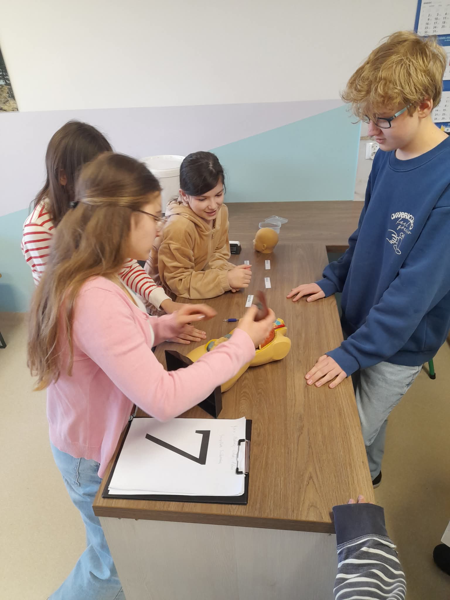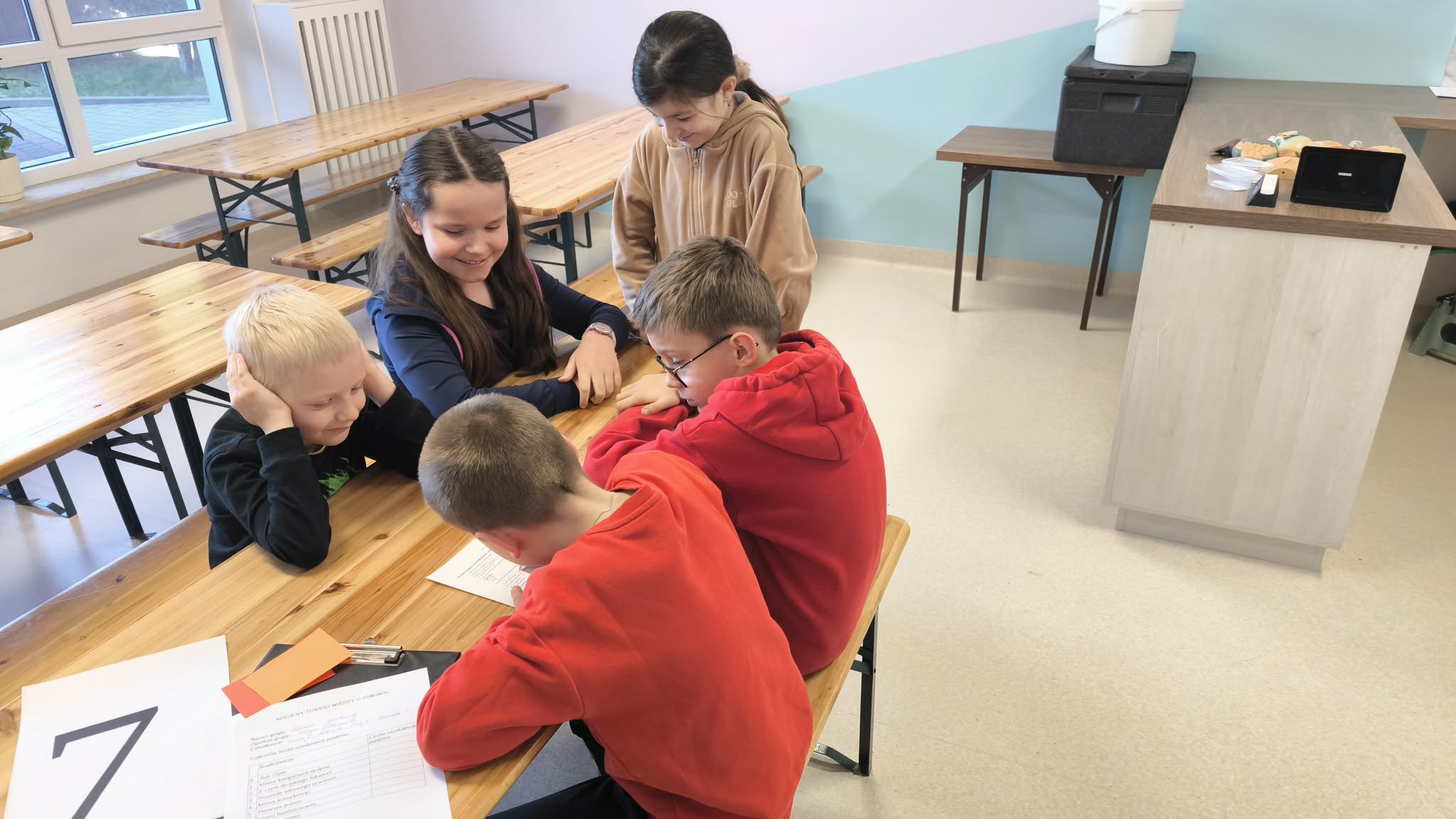 Dziś w naszej szkole obchodziliśmy Światowy Dzień Zdrowia. Z tej okazji p. Basia i p. Hania przygotowały dla uczniów wiele atrakcji i aktywności związanych ze zdrowym stylem życia. Uczniowie pracowali w drużynach – każda z nich zaczynała od krótkiego testu, który sprawdzał podstawową wiedzę o zdrowiu. Następnie zespoły przemieszczały się po specjalnie przygotowanych stacjach. Na każdej czekało na nich inne zadanie: ruchowe, edukacyjne lub angażujące do współpracy i myślenia. Było dużo śmiechu i zdrowej rywalizacji. To był dzień pełen dobrej zabawy i ważnych lekcji o tym, jak dbać o siebie na co dzień.