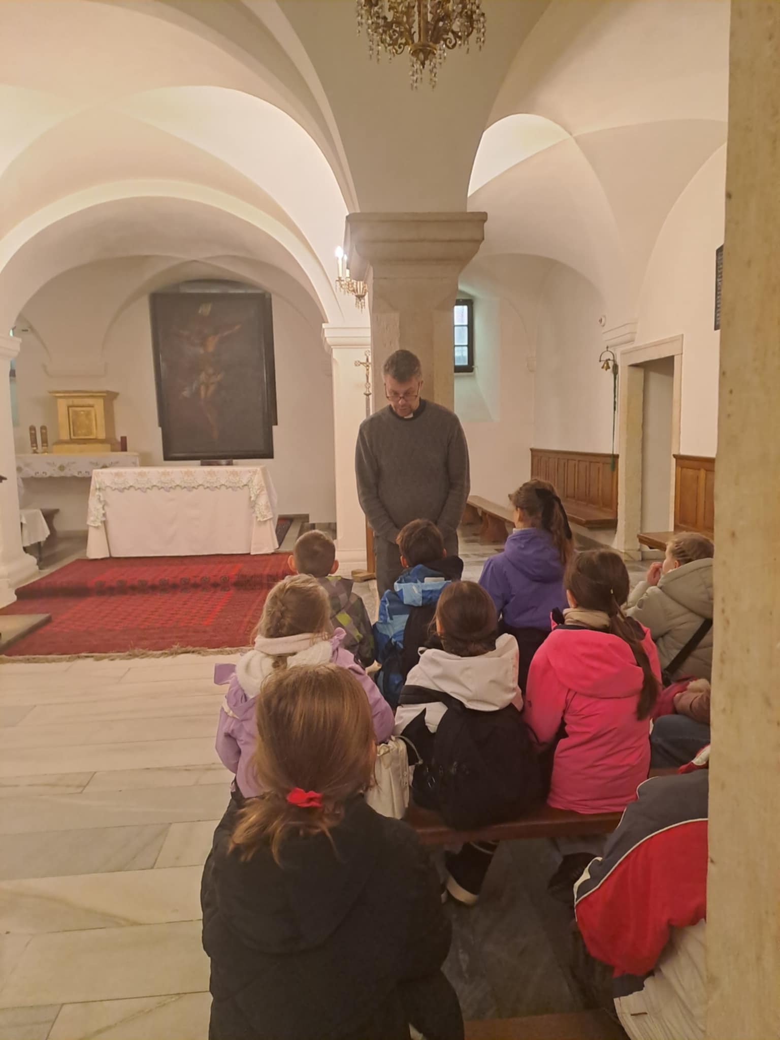 W piątek klasa III wybrała się do Kościoła św. Krzyża znajdującym się na Krakowskim Przedmieściu. Ksiądz Rafał opowiedział nam historię kościoła i poszczególnych ołtarzy, natomiast Ksiądz Proboszcz opowiedział nam i pokazał najskrytsze zakamarki kościoła dolnego. Skorzystaliśmy też z pięknej pogody i udaliśmy się na krótki spacer.
