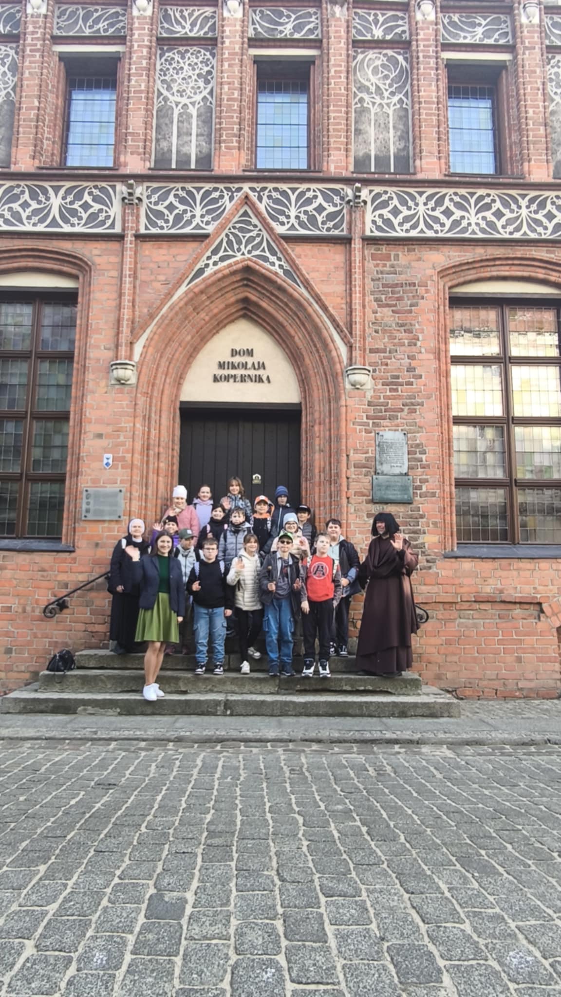 Wycieczka z Warszawy do Torunia. W środę mieliśmy okazję wspólnie odkrywać piękno jednego z najpiękniejszych miast w Polsce. Spacer po toruńskiej starówce, widok na Wisłę, odwiedziny w Katedrze św. Janów oraz w Domu Mikołaja Kopernika pozwoliły nam lepiej poznać historię i wyjątkowy klimat tego miejsca. Towarzyszył nam wspaniały przewodnik przebrany za Mikołaja Kopernika, który w ciekawy i pełen humoru sposób opowiadał o dziejach miasta. Nie zabrakło też chwili na wspólny, ciepły obiad i dobre rozmowy w jeszcze lepszym towarzystwie. Serdecznie dziękujemy naszej opiekunce – siostrze Łukaszy – za ogromne wsparcie, serce i troskę o nas podczas całej wycieczki. Oczywiście nie mogło zabraknąć toruńskich pierników – choć trzeba przyznać, że większość z nich została zjedzona już w pociągu w drodze powrotnej. To był piękny i radosny dzień wspólnego odkrywania, nauki i bycia razem.